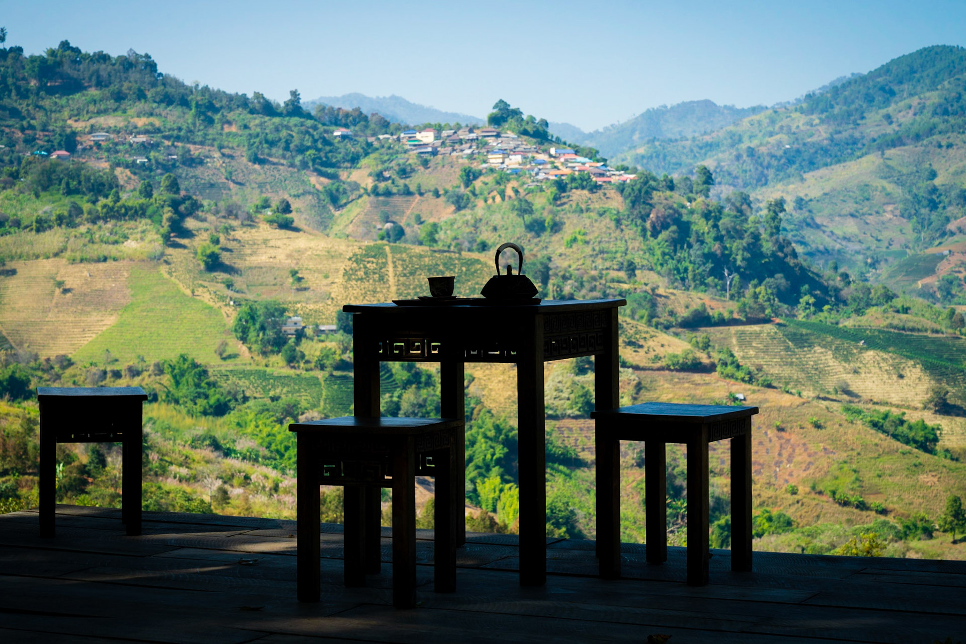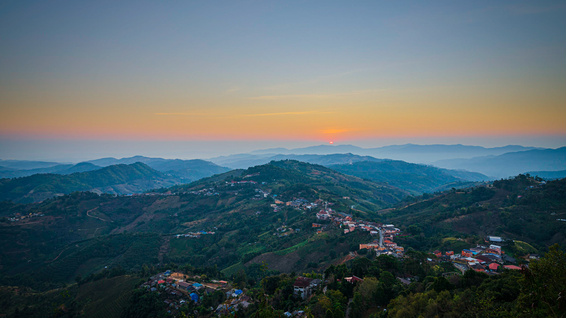 Mae Salong cityscape and landscape view from the top of the city. It was the winter season and the people are very nice. Mae Salong specializes in producing tea leaves.